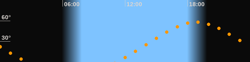 Höchster Stand (Kulmination)18:49 Uhr (h = 58,1°)