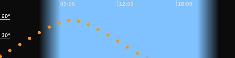 Aufgang23:32 Uhr im Nordosten (αAz = 58,6°)