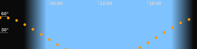 Höchster Stand (Kulmination)00:16 Uhr (h = 58,1°)