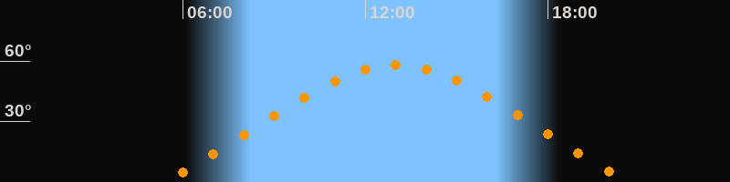 Höchster Stand (Kulmination)13:01 Uhr (h = 58,1°)