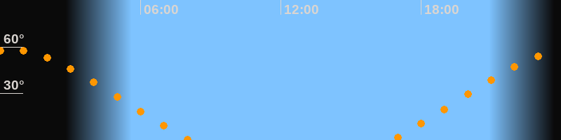 Höchster Stand (Kulmination)00:23 Uhr (h = 58,1°)