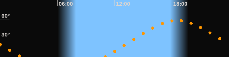 Höchster Stand (Kulmination)18:33 Uhr (h = 58,1°)