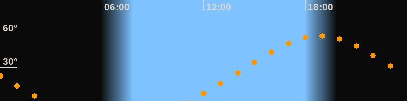 Höchster Stand (Kulmination)18:50 Uhr (h = 58,1°)