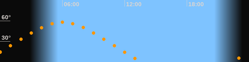 Höchster Stand (Kulmination)06:00 Uhr (h = 58,1°)