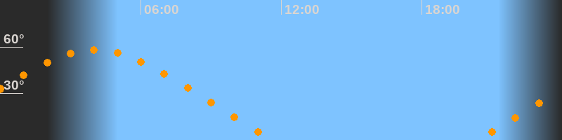 Aufgang20:17 Uhr im Nordosten (αAz = 58,6°)