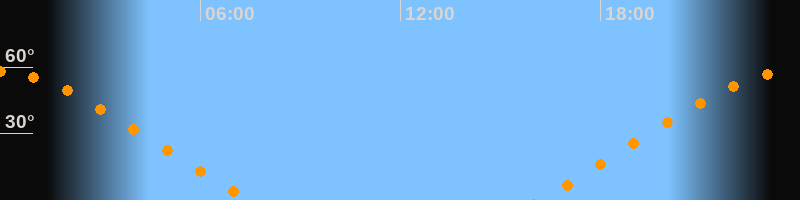 Höchster Stand (Kulmination)23:48 Uhr (h = 58,1°)