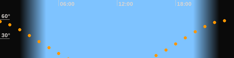 Höchster Stand (Kulmination)23:09 Uhr (h = 58,1°)