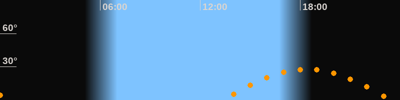 | Höchster Stand (Kulmination) | 18:23 Uhr (h = 27,8°) |