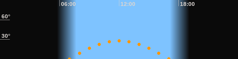 | Höchster Stand (Kulmination) | 12:00 Uhr (h = 27,8°) |