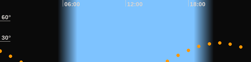 | Untergang | 02:02 Uhr im Westen (αAz = 252,4°) |