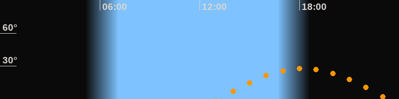 | Höchster Stand (Kulmination) | 18:12 Uhr (h = 27,8°) |