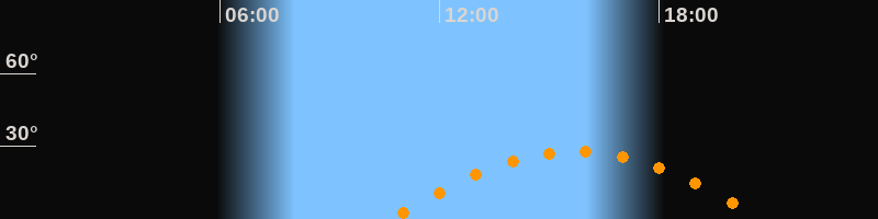 | Höchster Stand (Kulmination) | 15:44 Uhr (h = 27,8°) |