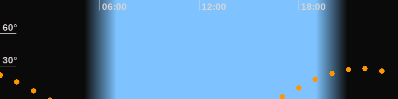 | Aufgang | 16:42 Uhr im Osten (αAz = 107,6°) |