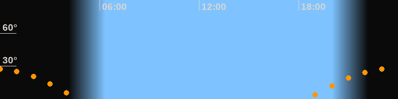| Aufgang | 18:28 Uhr im Osten (αAz = 107,6°) |