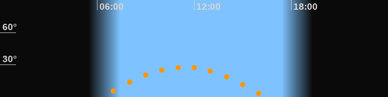 | Höchster Stand (Kulmination) | 11:21 Uhr (h = 27,8°) |