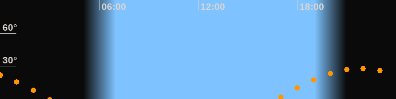 | Aufgang | 16:45 Uhr im Osten (αAz = 107,6°) |