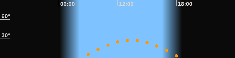 | Höchster Stand (Kulmination) | 13:23 Uhr (h = 27,8°) |