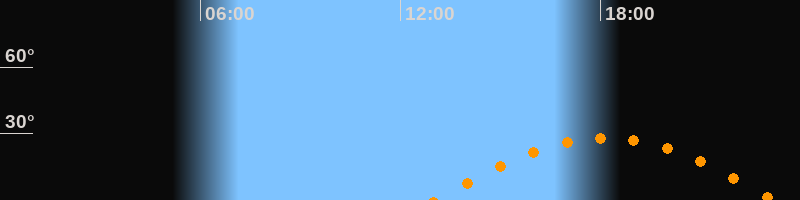 | Höchster Stand (Kulmination) | 18:08 Uhr (h = 27,8°) |