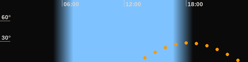 | Höchster Stand (Kulmination) | 18:17 Uhr (h = 27,8°) |
