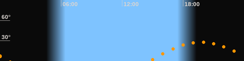 | Aufgang | 14:40 Uhr im Osten (αAz = 107,6°) |
