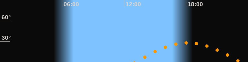 | Höchster Stand (Kulmination) | 18:11 Uhr (h = 27,8°) |