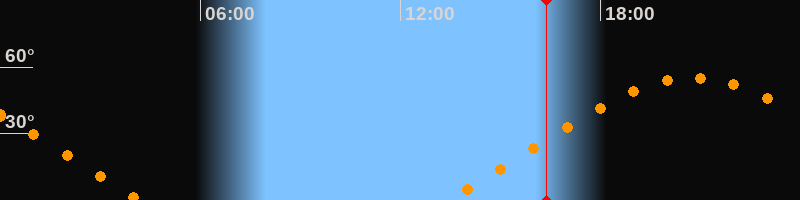 | Aufgang | 13:23 Uhr im Nordosten (αAz = 63,8°) |