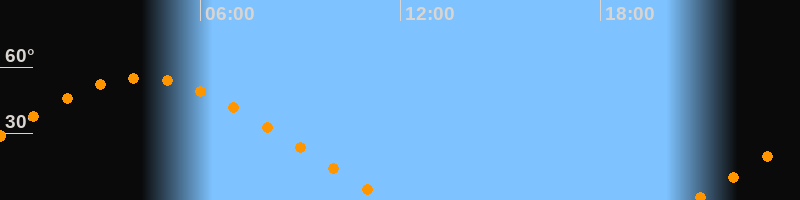 | Untergang | 11:37 Uhr im Nordwesten (αAz = 296,2°) |