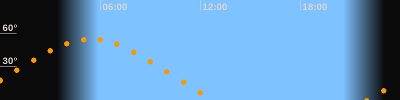 | Höchster Stand (Kulmination) | 05:25 Uhr (h = 55,1°) |