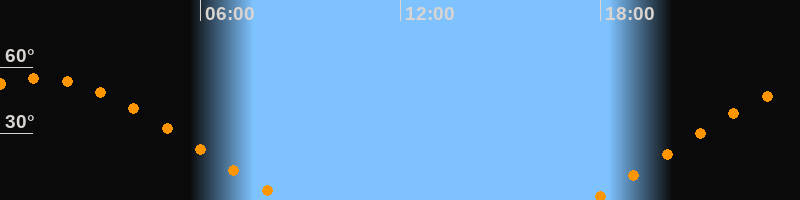 | Höchster Stand (Kulmination) | 01:06 Uhr (h = 55,1°) |