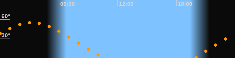 | Aufgang | 19:45 Uhr im Nordosten (αAz = 63,8°) |