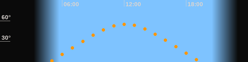 | Höchster Stand (Kulmination) | 12:05 Uhr (h = 55,1°) |