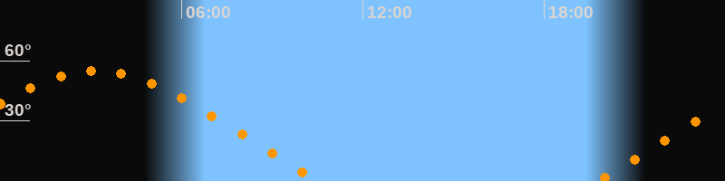 | Aufgang | 19:43 Uhr im Nordosten (αAz = 63,8°) |
