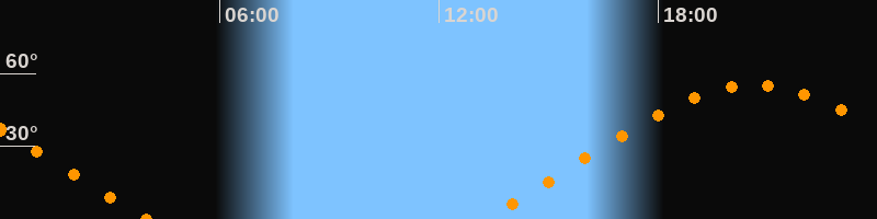 | Aufgang | 13:14 Uhr im Nordosten (αAz = 63,8°) |