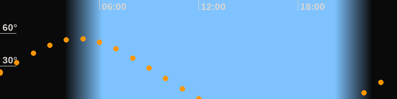 | Untergang | 12:07 Uhr im Nordwesten (αAz = 296,2°) |