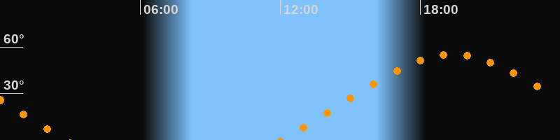 | Aufgang | 12:01 Uhr im Nordosten (αAz = 63,8°) |