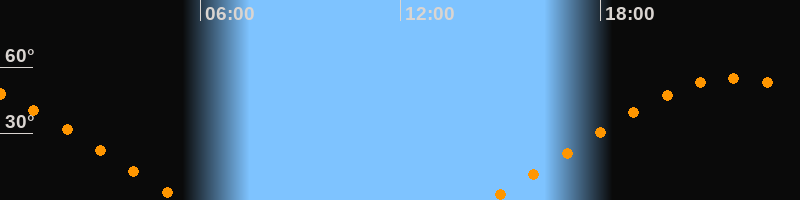 | Aufgang | 14:38 Uhr im Nordosten (αAz = 63,8°) |