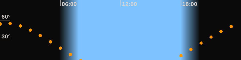| Aufgang | 17:10 Uhr im Nordosten (αAz = 63,8°) |