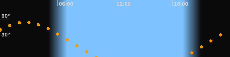 | Untergang | 10:00 Uhr im Nordwesten (αAz = 296,2°) |
