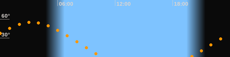 | Aufgang | 19:49 Uhr im Nordosten (αAz = 63,8°) |