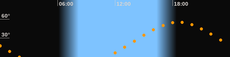 | Höchster Stand (Kulmination) | 18:35 Uhr (h = 55,1°) |