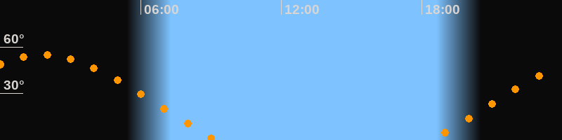 | Aufgang | 18:23 Uhr im Nordosten (αAz = 63,8°) |