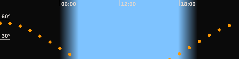 | Aufgang | 17:00 Uhr im Nordosten (αAz = 63,8°) |