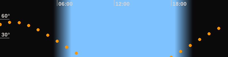 | Aufgang | 17:55 Uhr im Nordosten (αAz = 63,8°) |