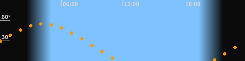 | Untergang | 11:35 Uhr im Nordwesten (αAz = 296,2°) |