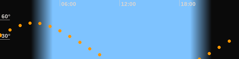 | Aufgang | 19:57 Uhr im Nordosten (αAz = 63,8°) |