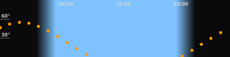 | Aufgang | 18:42 Uhr im Nordosten (αAz = 63,8°) |
