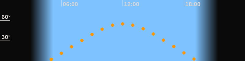 | Höchster Stand (Kulmination) | 12:00 Uhr (h = 55,1°) |