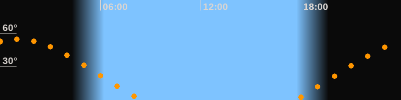 | Aufgang | 17:36 Uhr im Nordosten (αAz = 63,8°) |