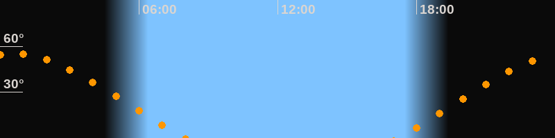 | Aufgang | 17:09 Uhr im Nordosten (αAz = 63,8°) |