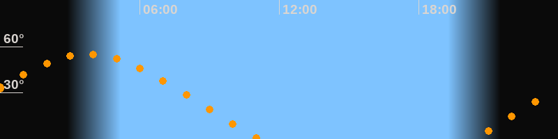 | Untergang | 11:10 Uhr im Nordwesten (αAz = 296,2°) |
